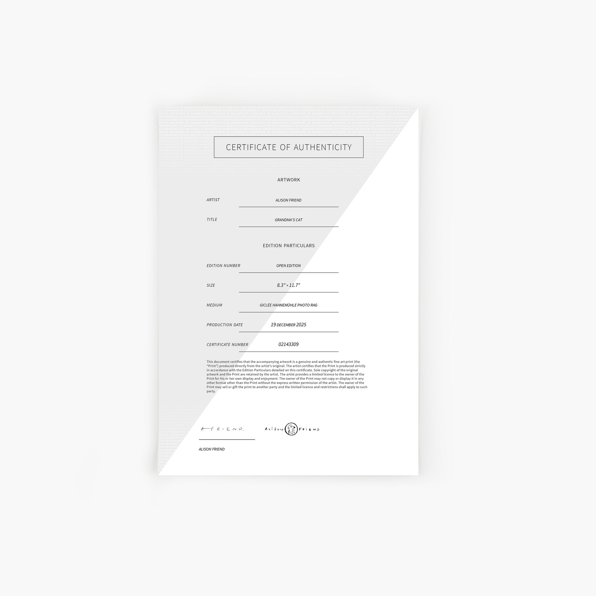 Official museum-quality Giclée print digitally signed by Alison Friend
